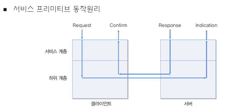 계층 구조 프로토콜에서 하위 계층이 상위 계층에 제공하는 서비스의 종류로 프리미티브 형태로 구현된다.