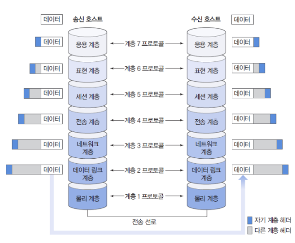 - 계층 n프로토콜 : 계층 n 모듈끼리 사용하는 통신 규칙