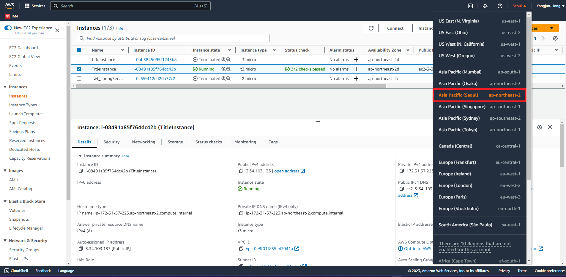 이때 Region이 Seoul로 되어 있어야 합니다.