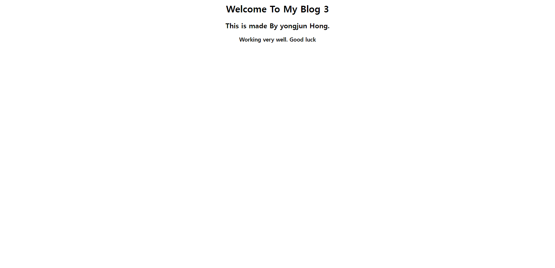 echo "<center><h1>Welcome To My Blog 3</h1><h2>This is made By yongjun Hong. </h2><h3>Working very well. Good luck</h3></center>" > index.html