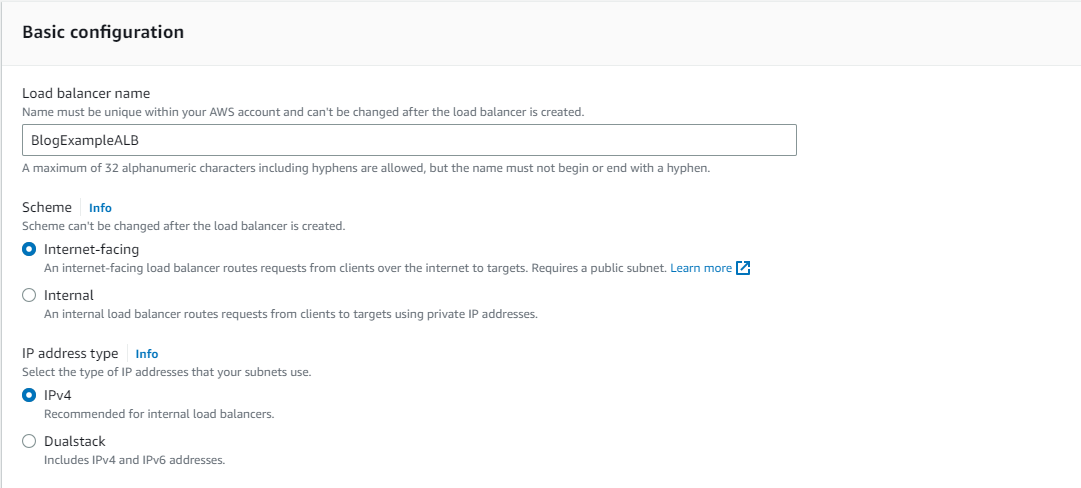 인터넷을 통해 트래픽을 받고 분산시킬 것이기 때문에 Internet-facing을 고릅니다.