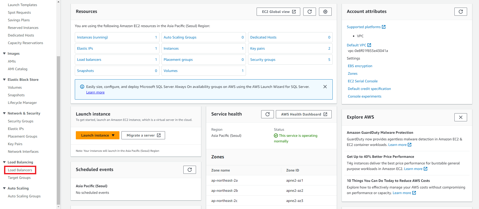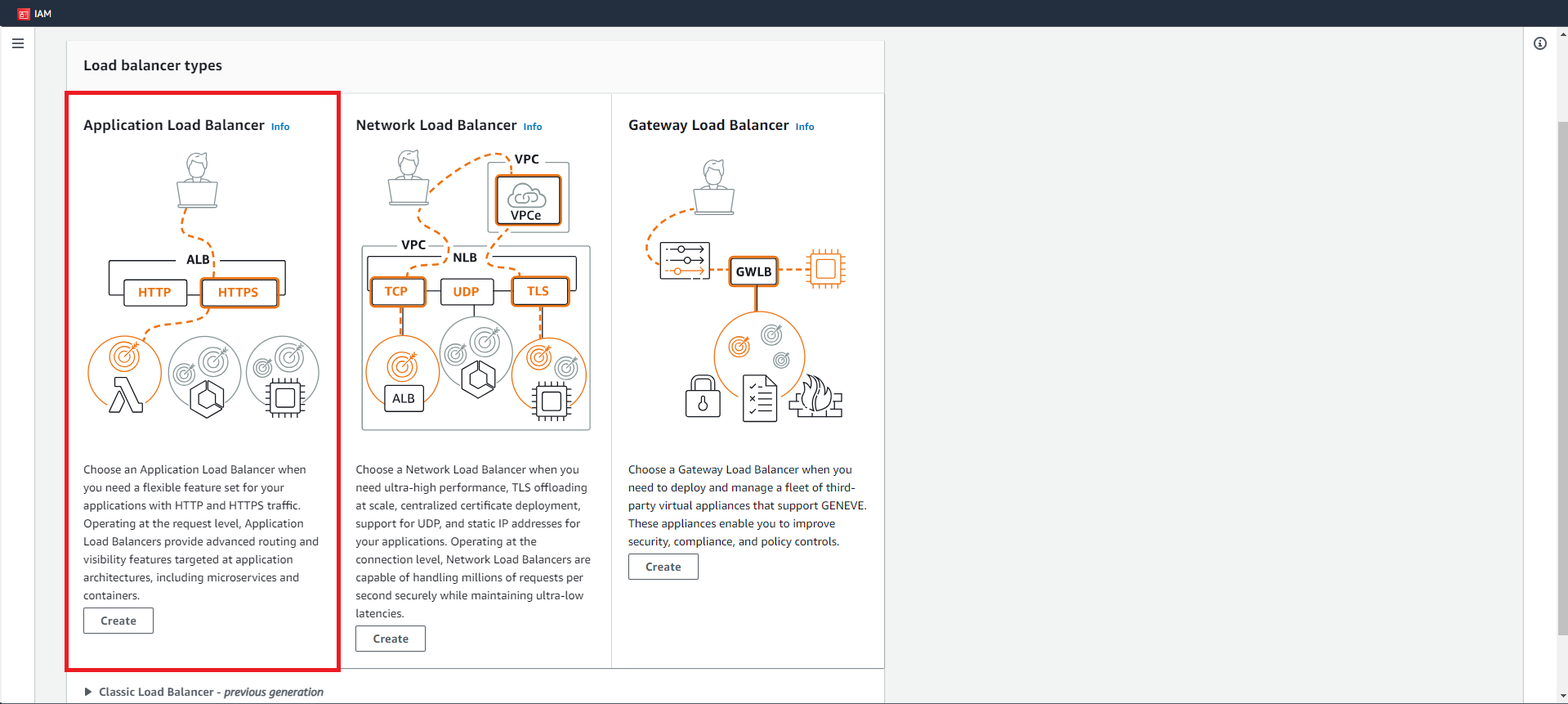 이때 Load Balancers에서 HTTP, HTTPS를 사용하는 Application Load Balancer를 사용할 것이기 때문에