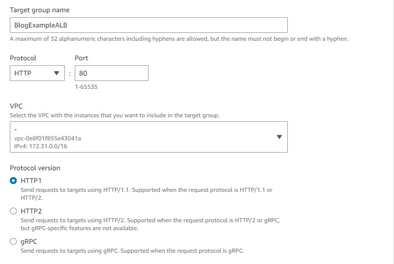 Target Group Name은 BlogExampleTG으로 해줍니다.