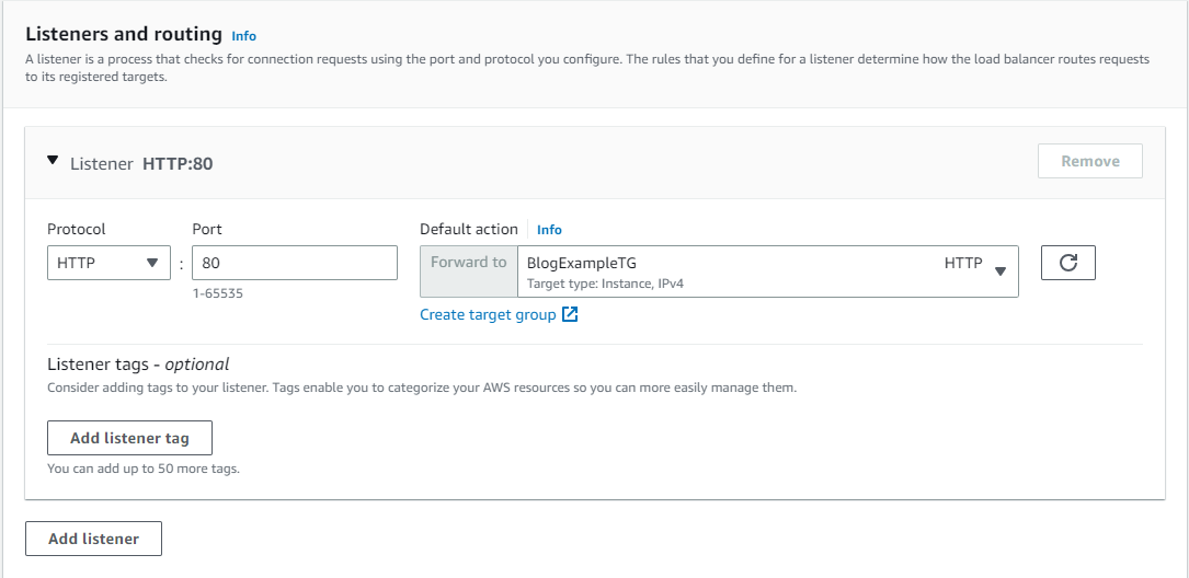 그리고 80번 포트로 들어온 트래픽을 BlogExampleTG로 라우팅을 해줍니다.