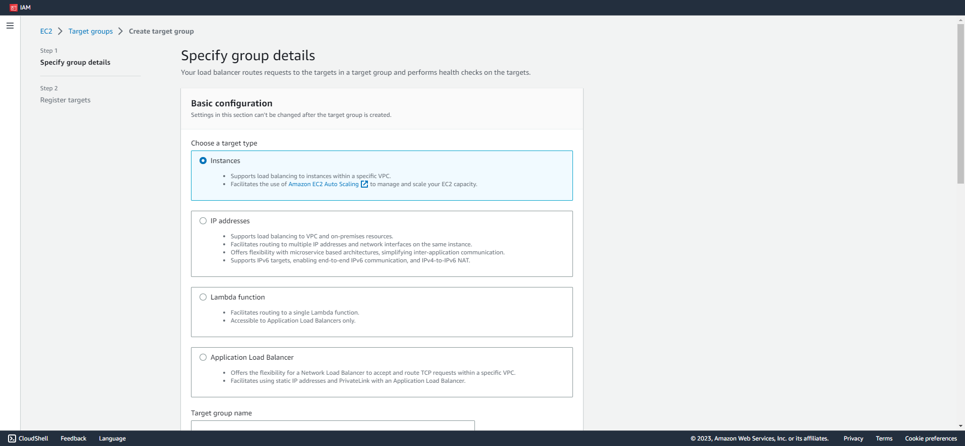 2. 정해진 Instance에게 부하를 분산해 주기 위해 Target Group을 설정해 줍니다.
