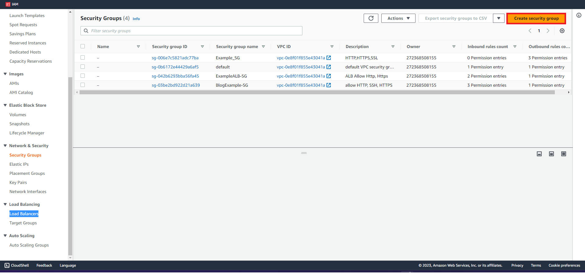 1. LoadBalancer에서 만들 Security Group을 만들어줍니다.