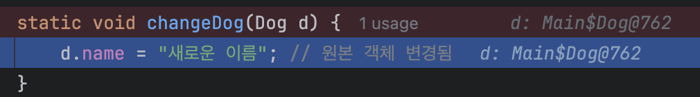 System.out.println(myDog.name); // "새로운 이름" 출력