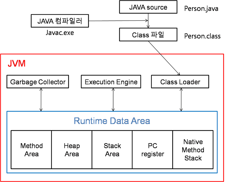 - Stack Area : 메서드를 호출할 때 해당 프레임이 생기고 그 지역 변수, 매개 변수 데이터 값이 저장