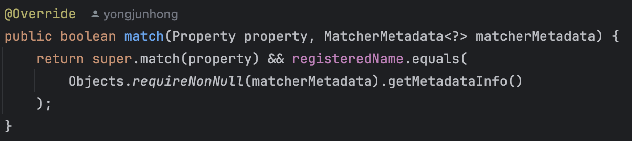 현재 Matcher는 이름과 객체의 타입을 기반으로 비교 작업을 수행하는 로직을 가지고 있습니다.