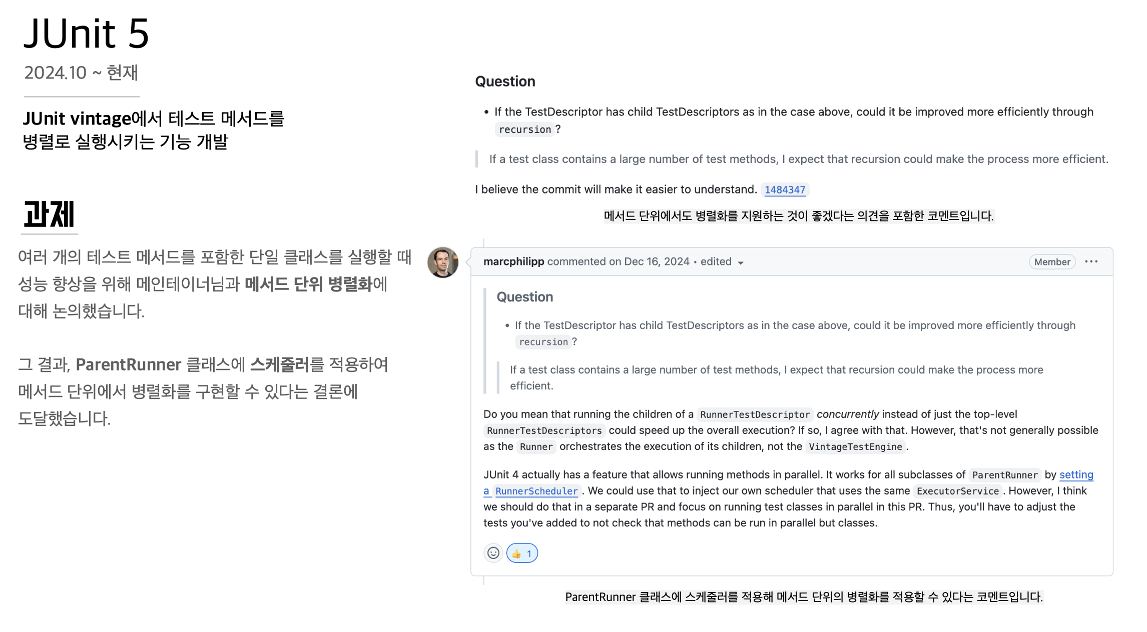 그로 인해 메서드 단위의 병렬화도 메인테이너님께 제안을 드렸고, 긍정적인 답변을 받아 작업을 하게 되었습니다.
