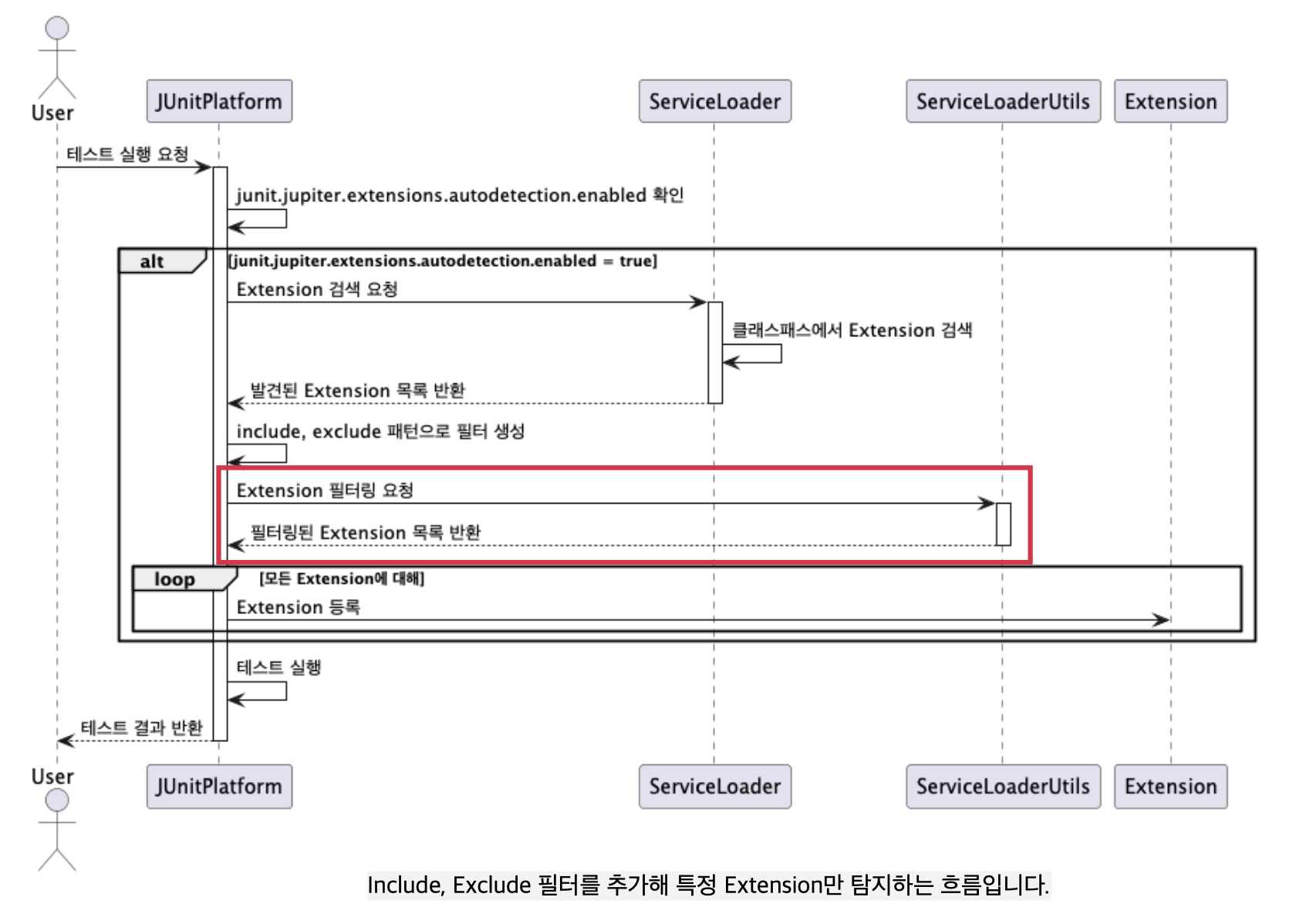 위 코드는 필터를 생성한 뒤, ServiceLoader에서 Extension을 조회하는 시점에 필터를 적용해 사용자가 지정한 Extension만 가져오도록 하는 코드입니다.