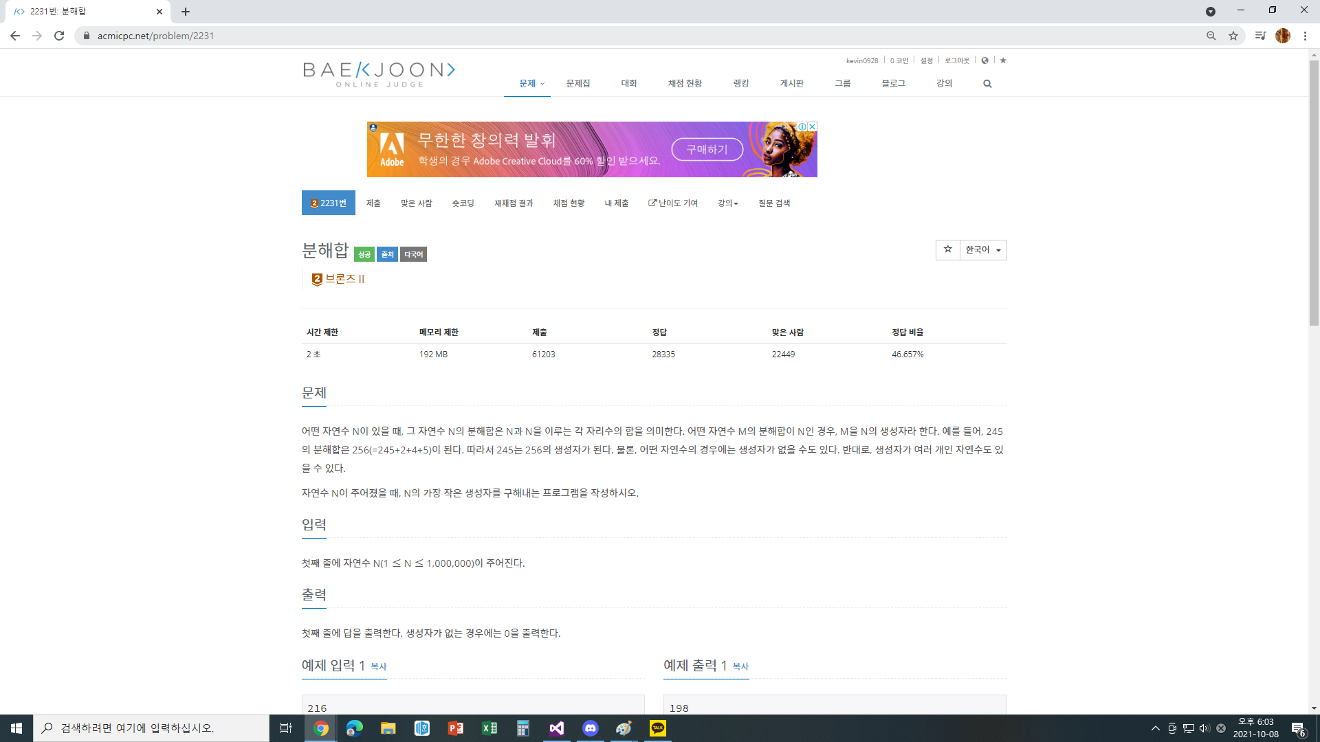 break; // 문제에서 가장 작은 분해합을 구하라고 하는데 쉽게말해 분해합이 처음 나왔을때 break를 하면 가장 작은 분해합이다.