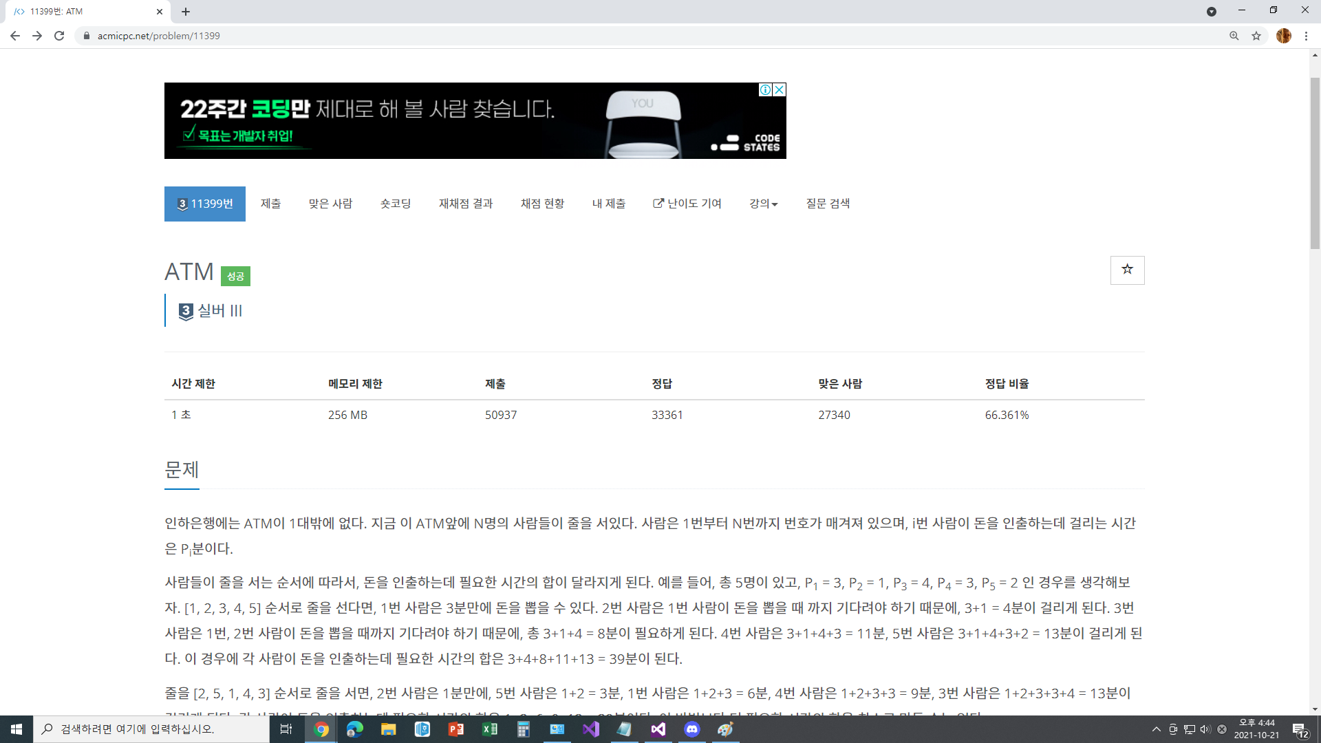 출력:첫째 줄에 각 사람이 돈을 인출하는데 필요한 시간의 합의 최솟값을 출력한다.